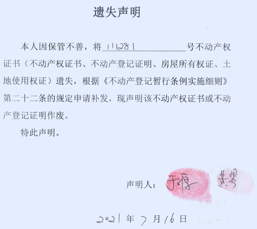 遗失声明(于源、黄琴)