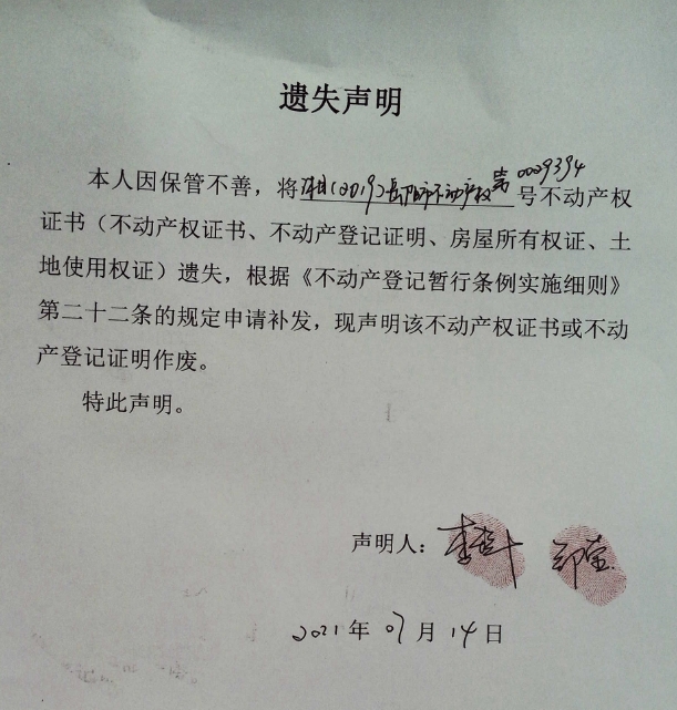 遗失声明(郑莹)