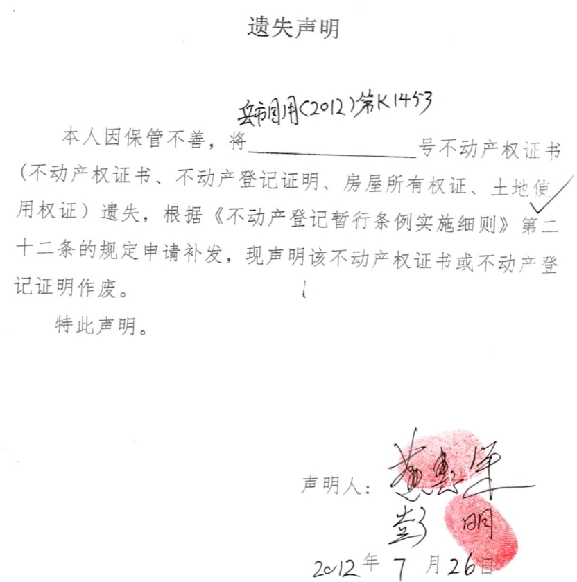 遗失声明 (黄惠策、彭明)