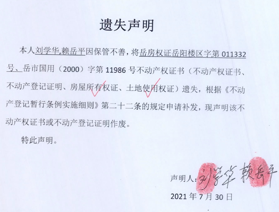 遗失声明(刘学华、赖岳平)