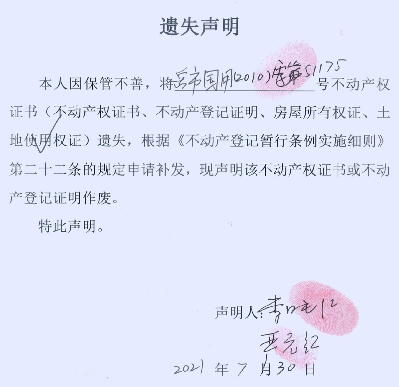 遗失声明(李映红、严元红)