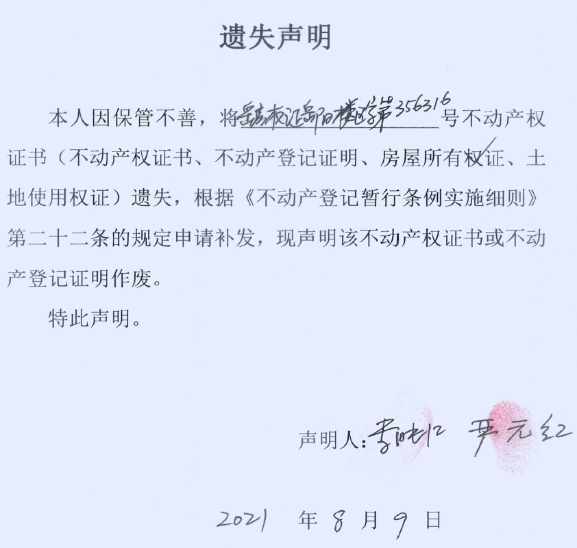 遗失声明(严元红)