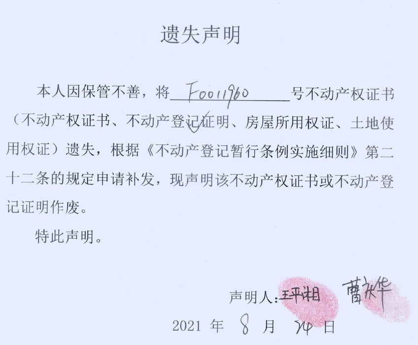 遗失声明(王平湘、曹庆华)