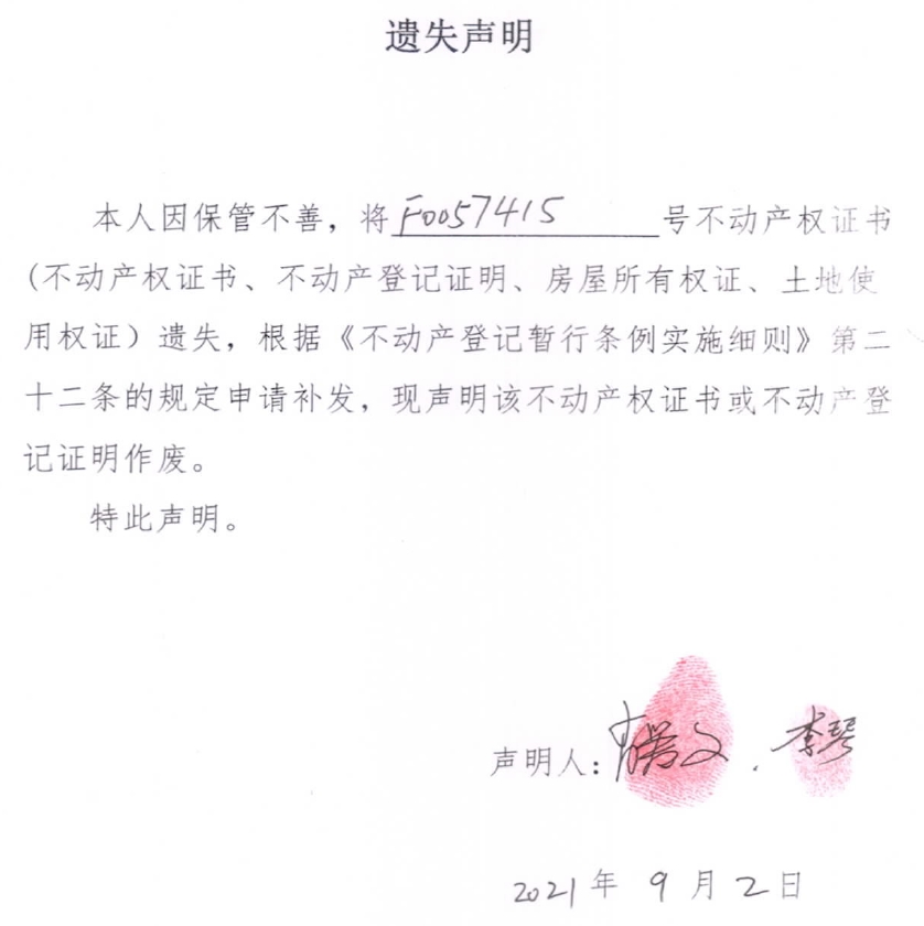 遗失声明(肖爱文、李琴)