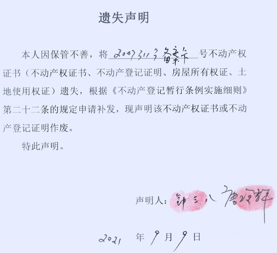 遗失声明 (唐玲辉、钟三八)