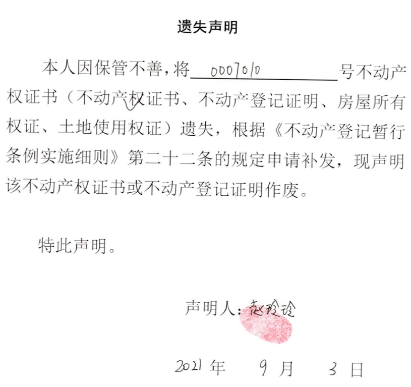 遗失声明(赵玲玲)