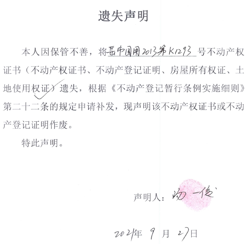 遗失声明(汤一俊)