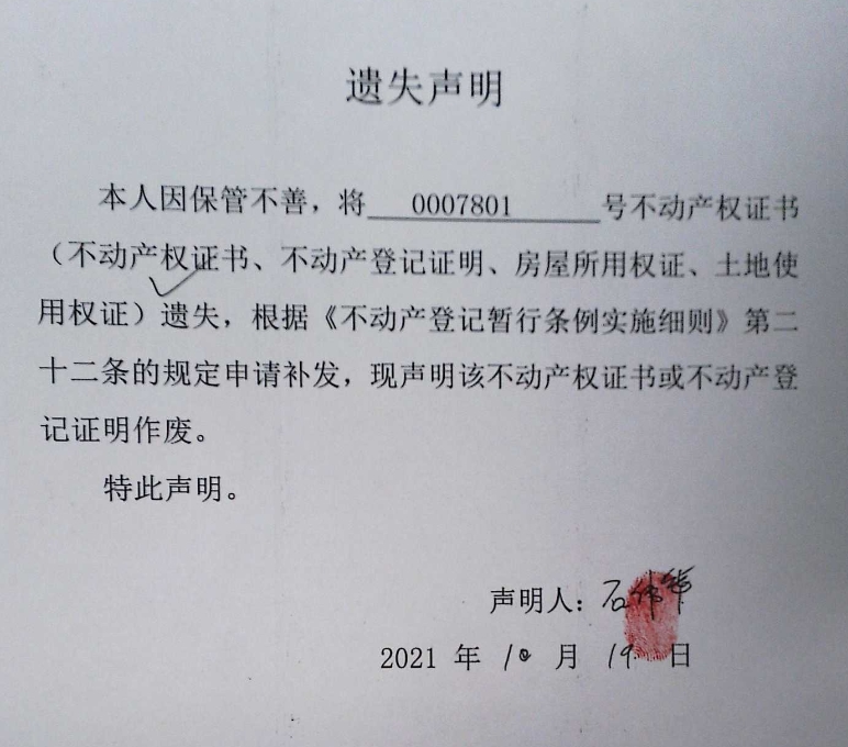 遗失声明(石伟华)