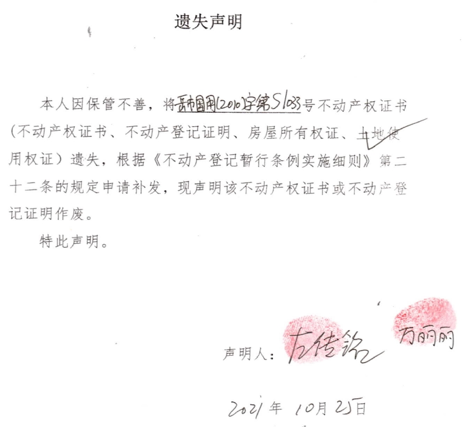 遗失声明 (左传铭、万丽丽)