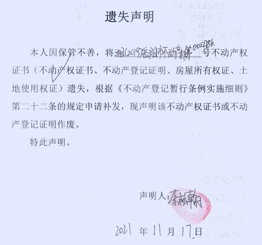 遗失声明(李松翰)