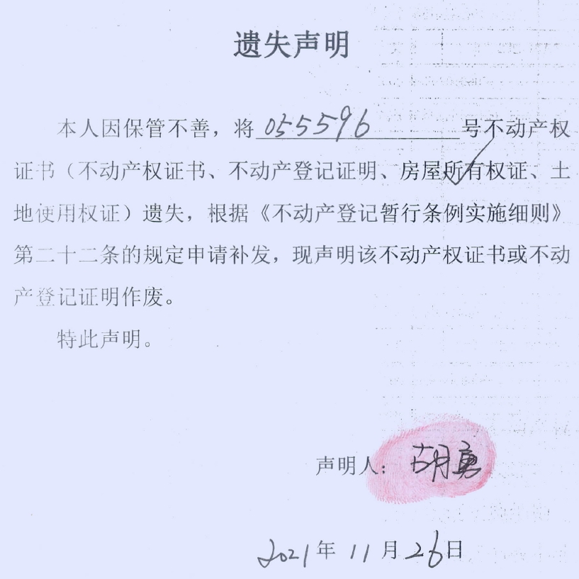 遗失声明(胡勇)