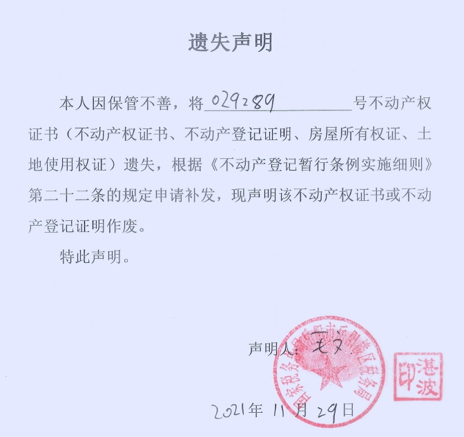 遗失声明 (国家税务总局岳阳市岳阳楼区税务局)