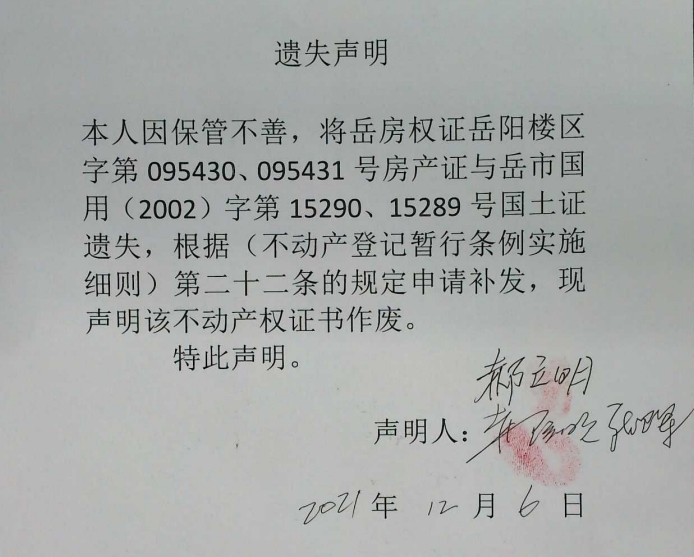 遗失声明(郝立明、张卫军)