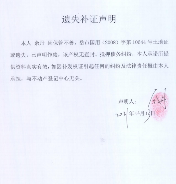 遗失声明(余丹)