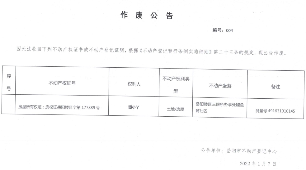 作废公告 编号:004(谭小Y)