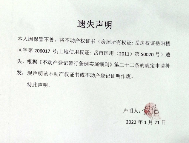 遗失声明(彭伟)