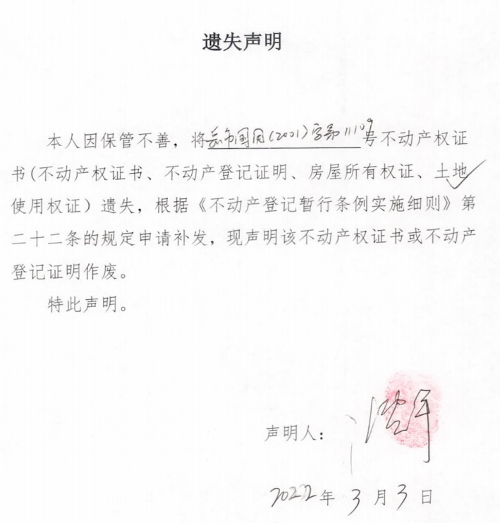 遗失声明(沈平)