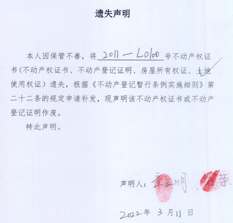 遗失声明(章金明、徐荣)