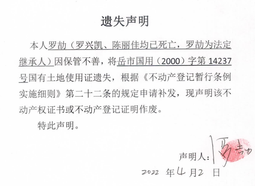 遗失声明(罗兴凯(已故)、陈丽佳(已故))