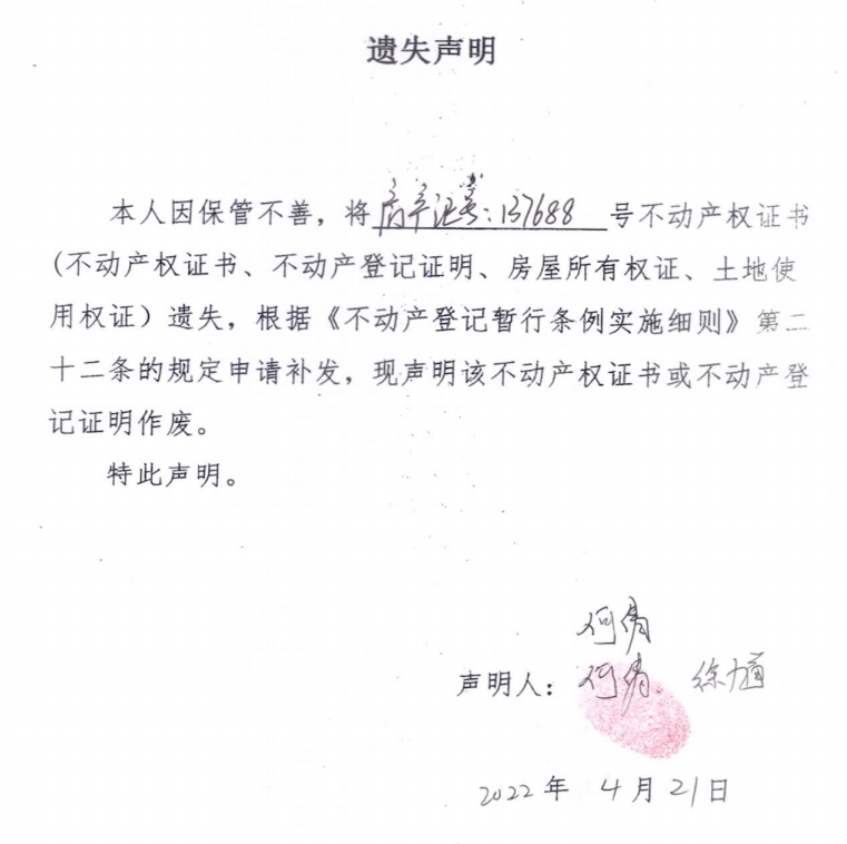 遗失声明(何倩、 徐馗)