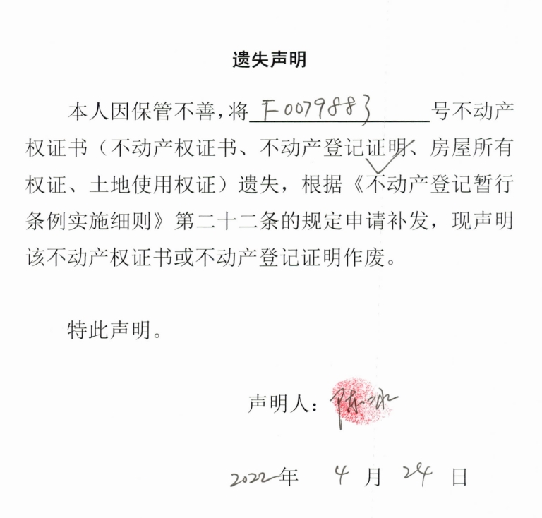 遗失声明(陈冰)