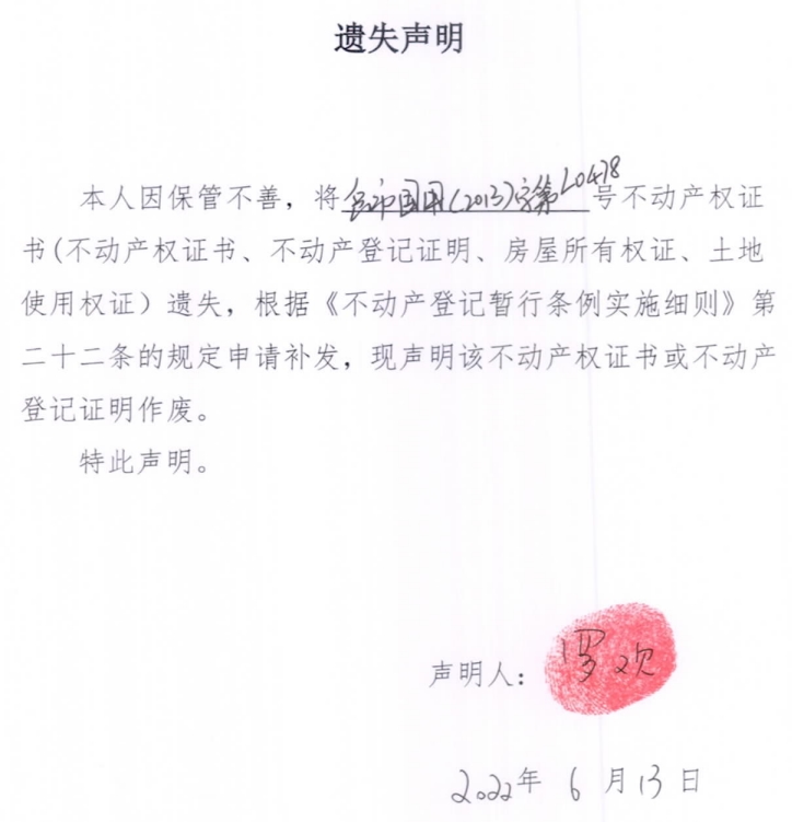 遗失声明(罗欢)