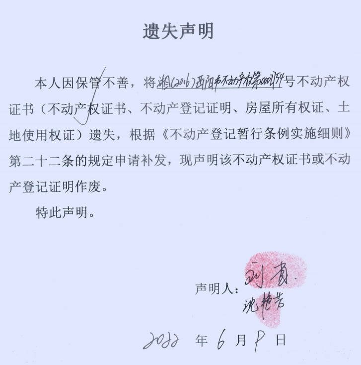 遗失声明(沈艳芳、刘省)