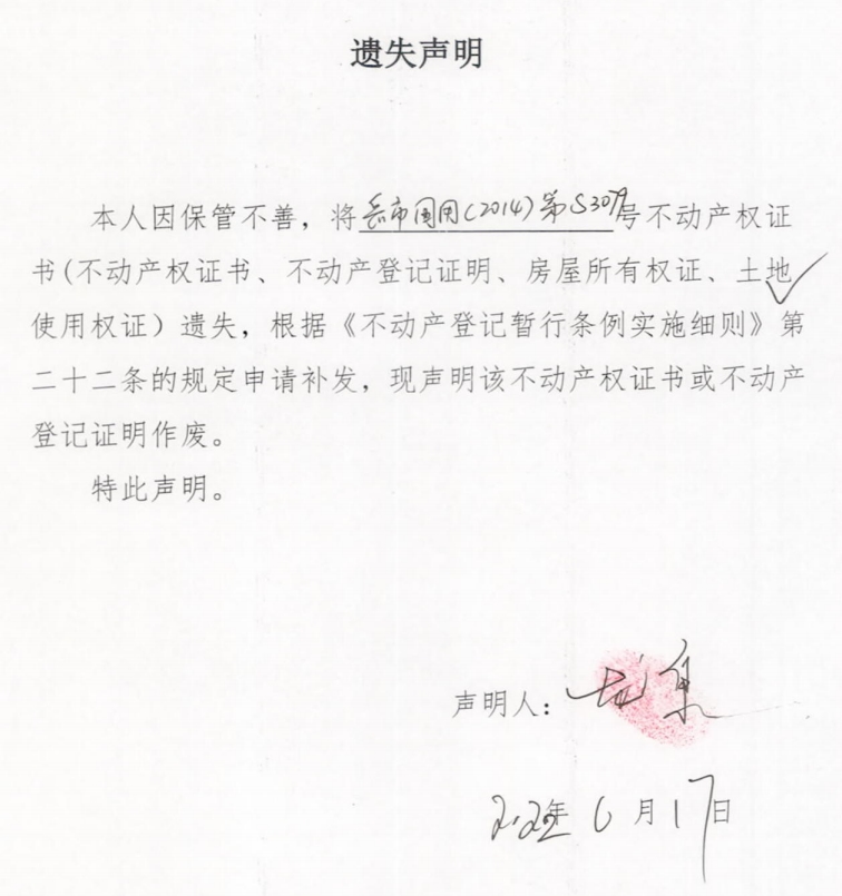 遗失声明(龙泉)