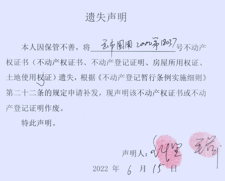 遗失声明(钟坚、毛萍)