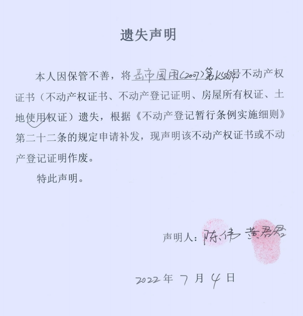 遗失声明(陈伟、黄君君)