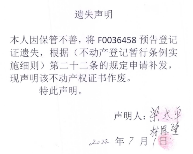 遗失声明(梁太平、林思望)