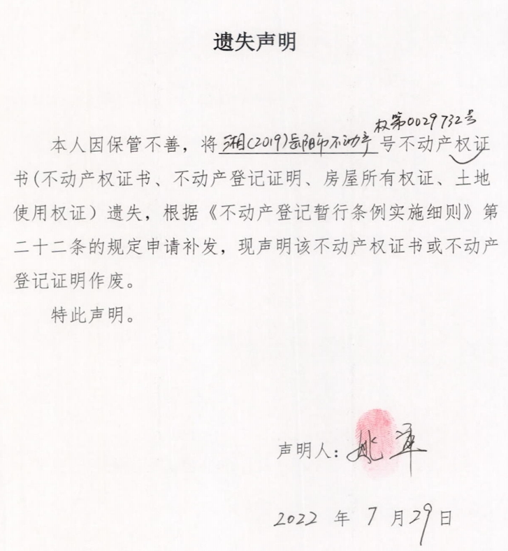 遗失声明(姚军)