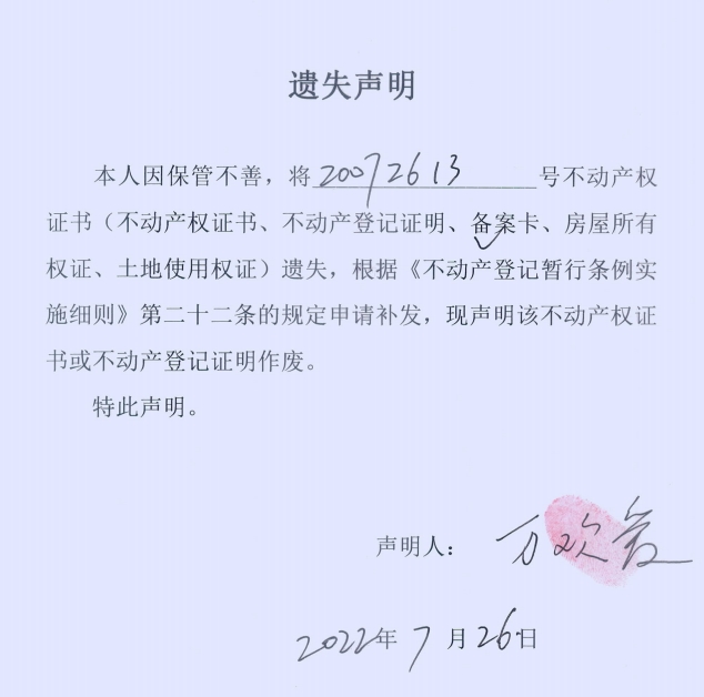 遗失声明(万欢爱、张洁萍)