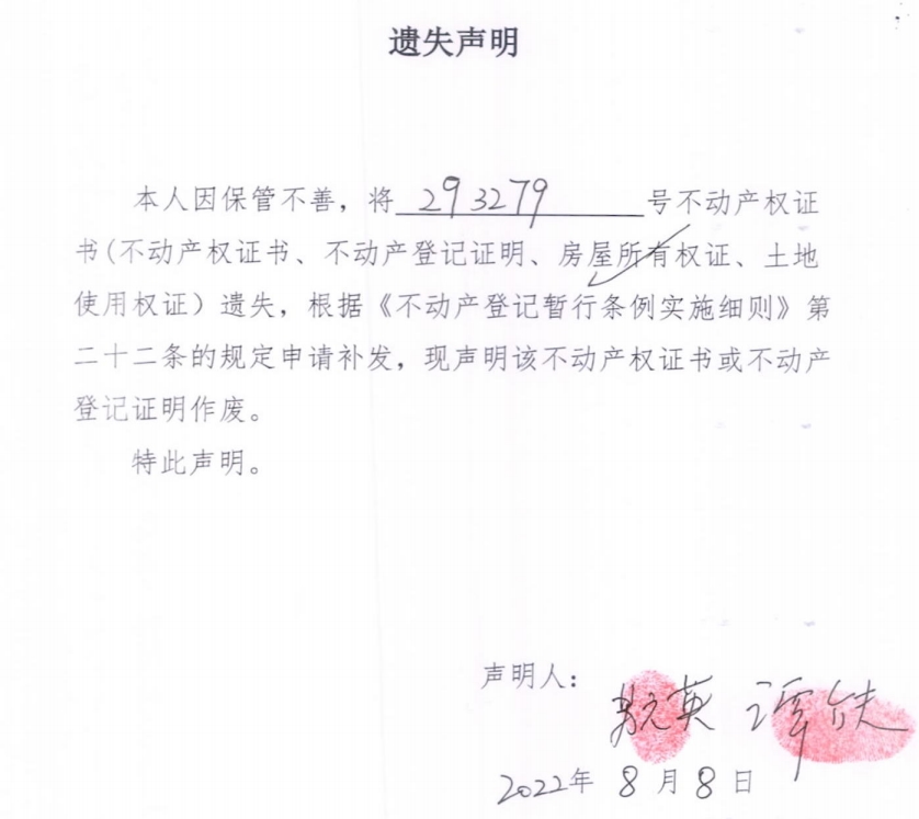 遗失声明(谭介夫、苏元英)