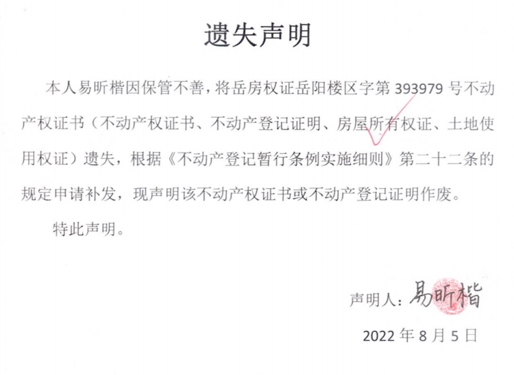 遗失声明(易昕楷(易汶达))