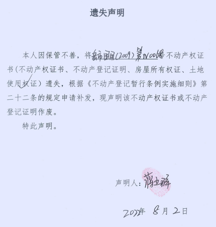 遗失声明(蒋立群)