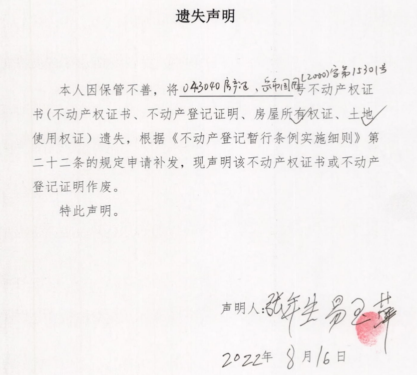 遗失声明(张年生、易玉萍)