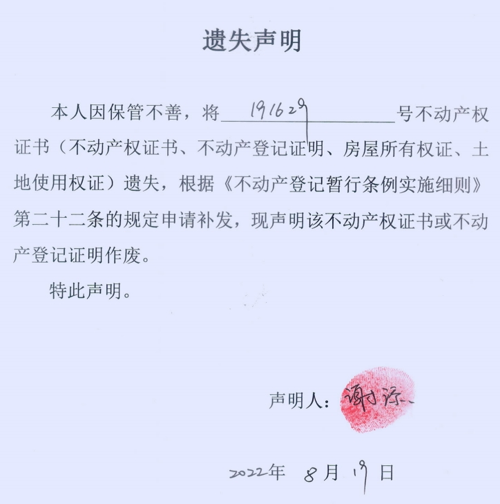 遗失声明(谢添)