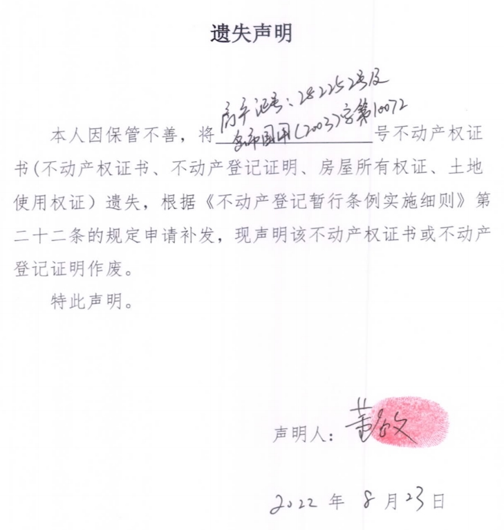 遗失声明(董敏)