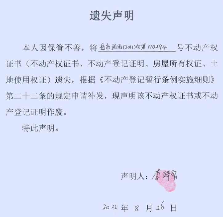 遗失声明(李琦霏)