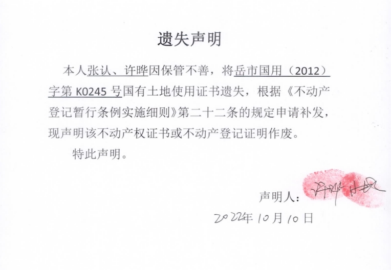 遗失声明(张认、许晔)