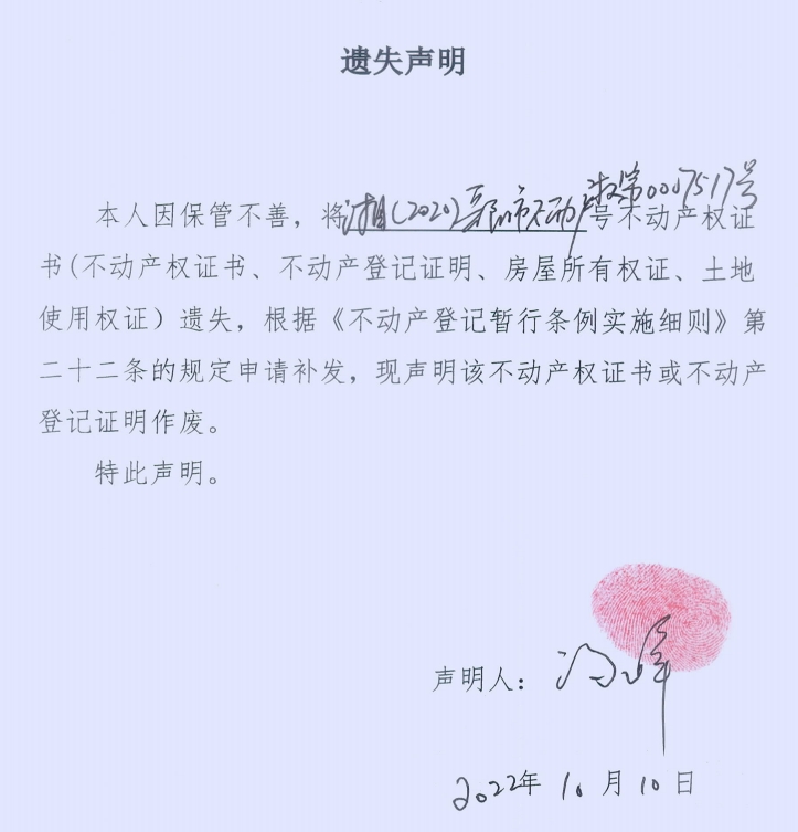 遗失声明(汤峰)