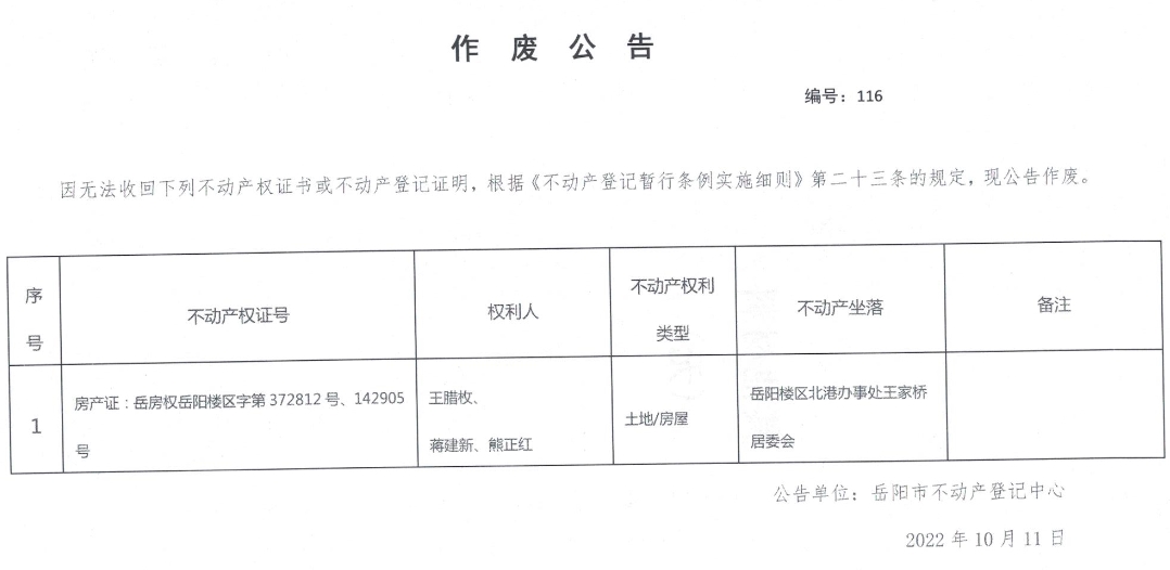 作废公告 编号:116(王腊枚、蒋建新、熊正红)