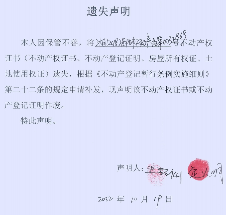 遗失声明(定义广 )