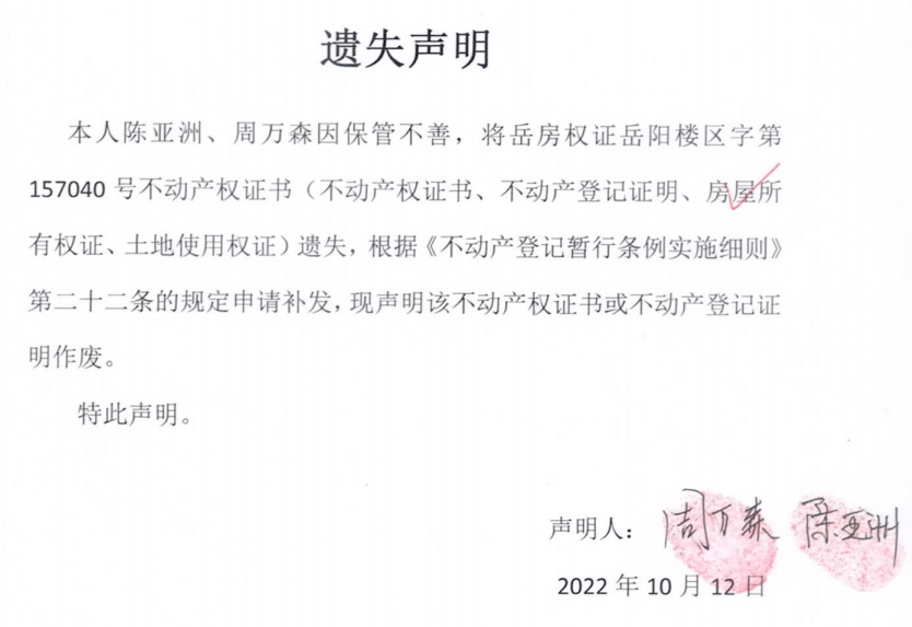 遗失声明(周万森、陈亚洲)