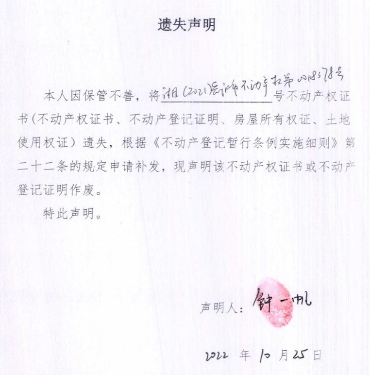 遗失声明(钟一帆)