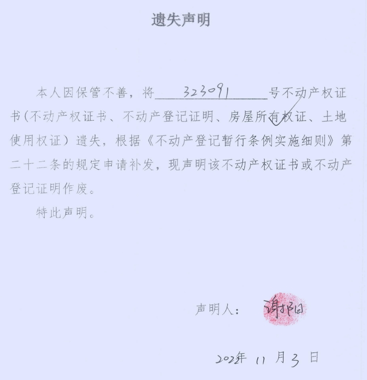 遗失声明(谢阳)