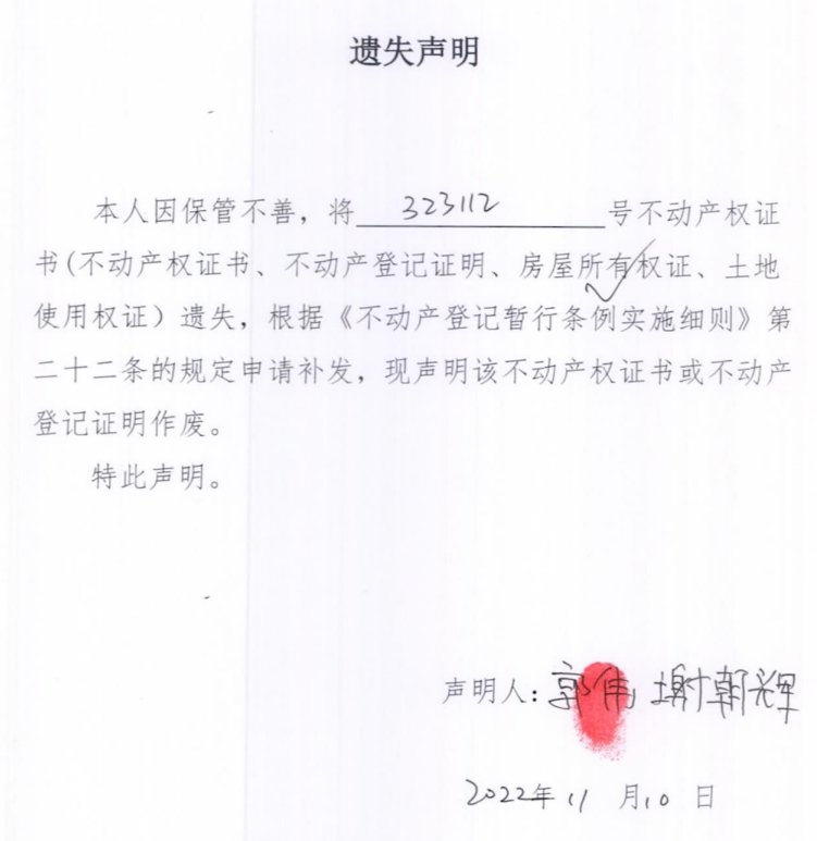 遗失声明(郭伟、谢朝辉)