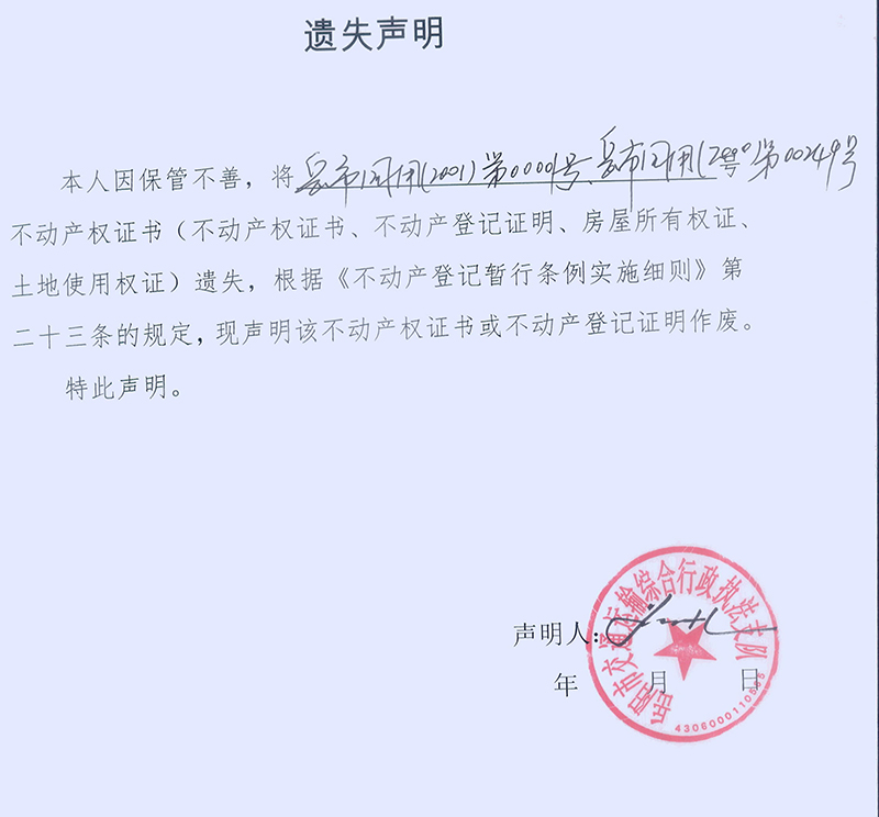 遗失声明(岳阳市交通运输综合行政执法支队)