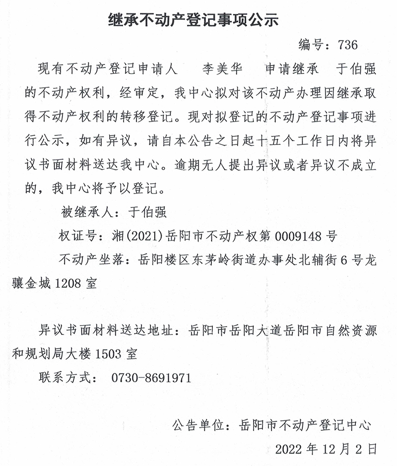 继承不动产登记公示 编号_ 李美华(736)